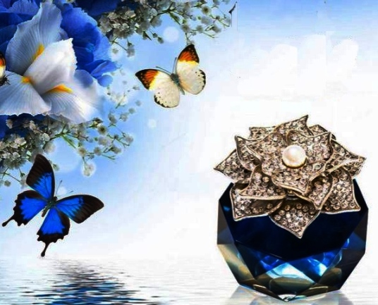 Изысканность духов подчеркивает изумительный флакон в виде роскошной броши, украшенной натуральным жемчугом и кристаллами от Сваровски.
