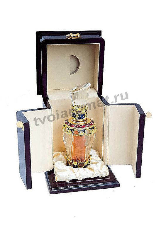 Искусно украшенный хрустальный флакон таится в недрах футляра из красного дерева с металлической застежкой. Цветочная композиция содержит целый сонм драгоценных нот: здесь и вард — розовое масло многолетней выдержки, и прихотливый ночной лотос, и пьянящая тубероза, и несравненный благоуханный пион. Чаровница-гардения, которую невозможно спутать ни с чем другим, звучит задушевно и испытующе, привнося в сердце знойное томление.